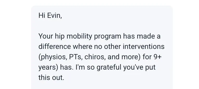 Stop wasting time and money on temporary fixes that don’t work. Our program addresses the root of the problem. This is the only hip mobility program you will ever need.